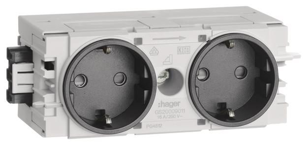 Hager GS20009011 outlet 2-socket , Graphite Black