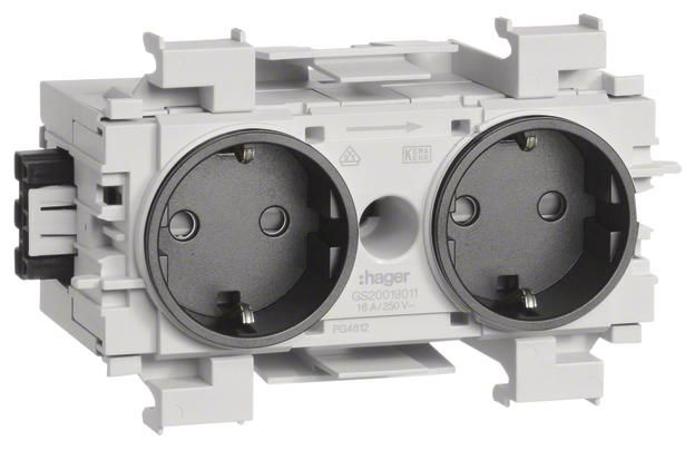 Hager GS20019011 socket, 2-f,-WA St, clamp, front-locking, gs