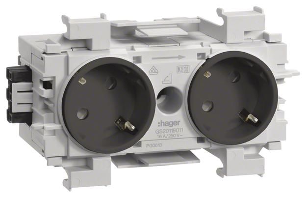 Hager GS20119011 socket 2-fold 45 °, Wago front snap gs