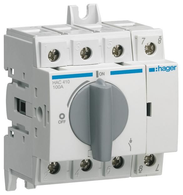 We offer you Hager HAC410 switch disconnector 4P 100A always at the best possible price. We can give you a discount of 2% on Hager HAC410 switch disconnector 4P 100A if you choose payment in advance on ordering.