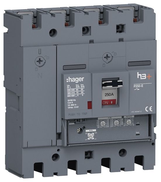 Hager HET251GR circuit breaker h3+ P250 LSnI 4P4D N0-50-100% 250A 70kA FTC