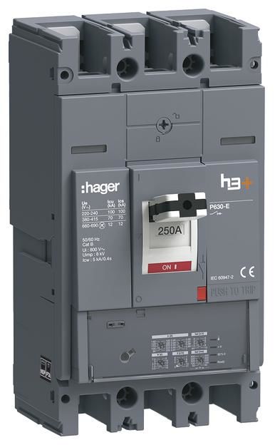 Hager HEW250JR circuit breaker h3+ P630 LSI 3P3D 250A 70kA FTC
