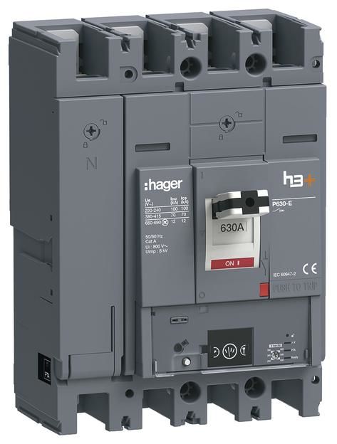 Hager HEW631NR circuit breaker h3+ P630 Energy 4P4D N0-50-100% 630A 70kA