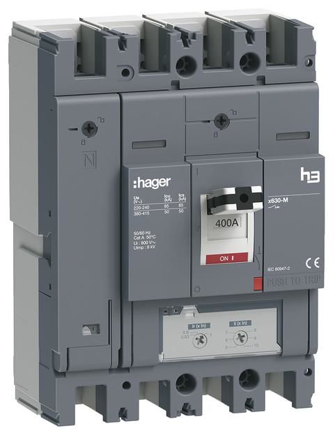 Hager HMJ401DR circuit breaker h3 x630 TM ADJ 4P4D N0-100% 400A 50kA FTC