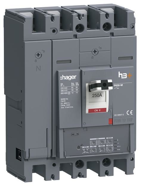 Hager HMW251JR circuit breaker h3+ P630 LSI 4P4D N0-50-100% 250A 50kA FTC