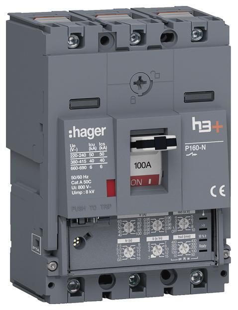 Hager HNS100JC circuit breaker h3+ P160 LSI 3P3D 100A 40kA CTC