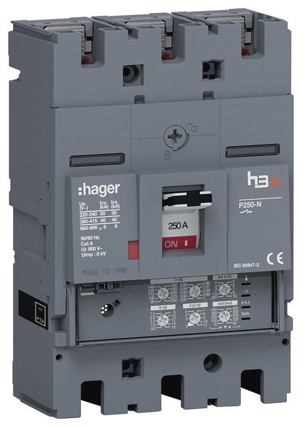 Hager HNT250JR circuit breaker h3+P250 LSI 3P3D 250A 40kA FTC