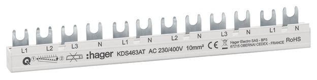 Hager KDS463AT phase rail 12 modules 63A L1L2L3N-L1N-L2N-L3N-L1N QuickBusbar