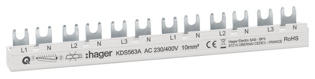 Hager KDS563A phase rail 12 modules 63A L1N-L2N-L3N-L1N-L2N-L3N QuickBusbar