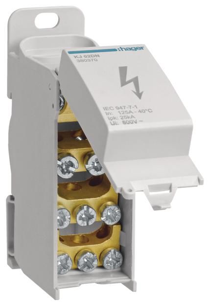 We offer you Hager KJ02DN distribution block 125A front cover. closed 1p 2x35/2x25/6x16qmm always at the best possible price. We can give you a discount of 2% on Hager KJ02DN distribution block 125A front cover. closed 1p 2x35/2x25/6x16qmm if you choose payment in advance on ordering.