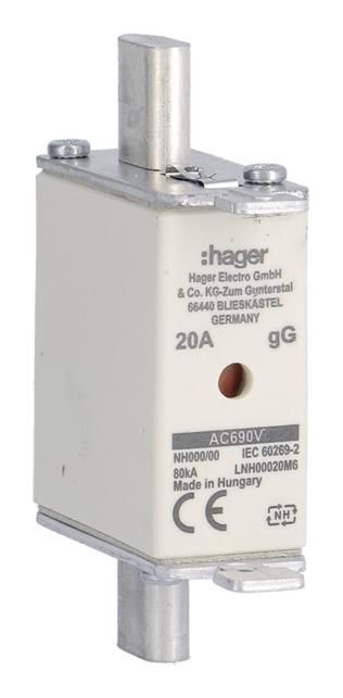 Hager LNH00020M6 fuse link NH000 690V gG 20A comb. tab voltage-carrying