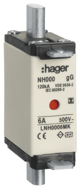 We offer you Hager LNH0006MK fuse NH000 6A 500V gG center indicator S-free always at the best possible price. We can give you a discount of 2% on Hager LNH0006MK fuse NH000 6A 500V gG center indicator S-free if you choose payment in advance on ordering.