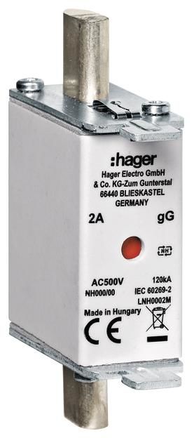 We offer you Hager LNH0020M fuse link NH000 500V gG 20A combination detector with metal tab always at the best possible price. We can give you a discount of 2% on Hager LNH0020M fuse link NH000 500V gG 20A combination detector with metal tab if you choose payment in advance on ordering.