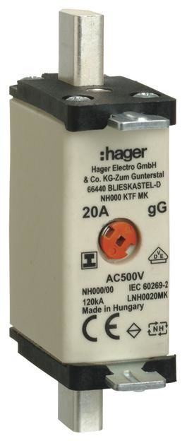 HAGER LNH0020MK fuse NH000 20A 500V, gG means, Indicator S-free