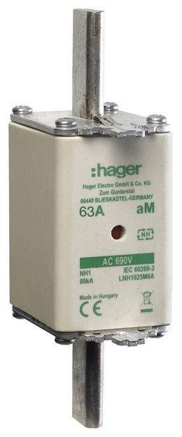 Hager LNH1063M6A fuse link NH1 690V aM 63A comb. tab voltage-leading.