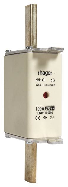 Hager LNH1100M6 fuse link NH1C 690V gG 100A comb. tab voltage-carrying