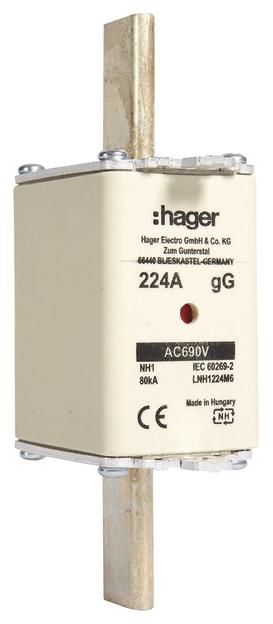 Hager LNH1224M6 fuse NH1 224A gG 690V center indicator S-lead
