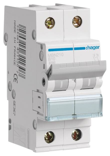 The article Hager MBN210 LS switch 2P 6kA B-10A 2M is currently in stock