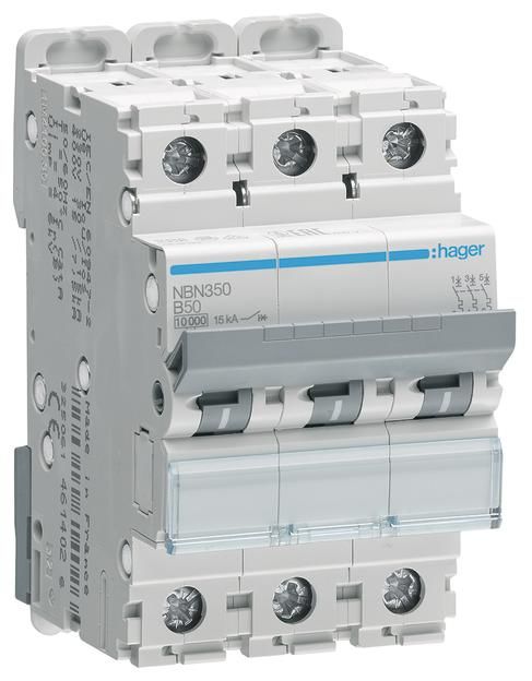 Hager NBN350 circuit breaker 3P 10kA B-50A,