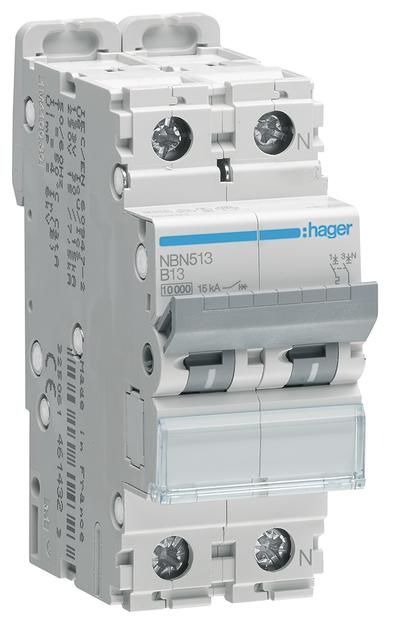 Hager NBN513 LS switch 1P+N 10kA B-13A 2M