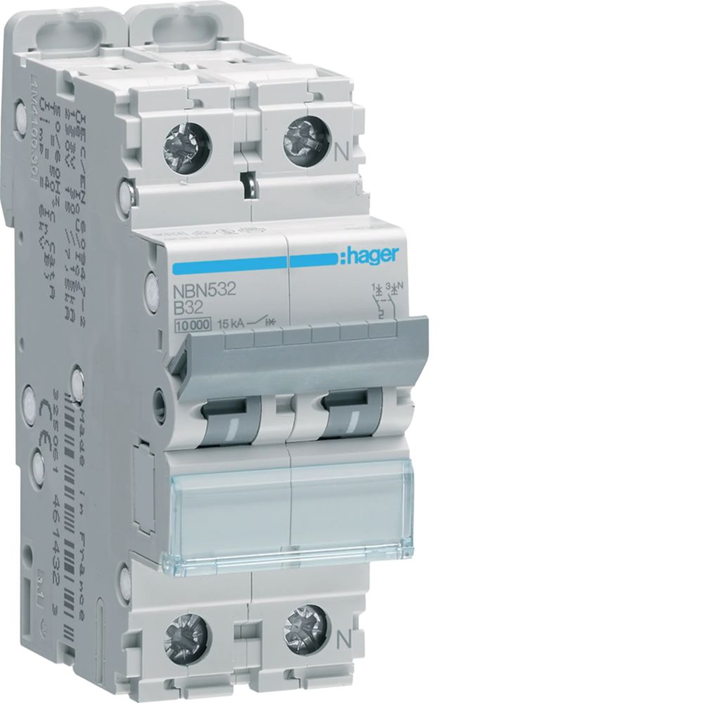 HAGER NBN532 miniature circuit breaker 1P+N 10kA/15kA B-32A 2M