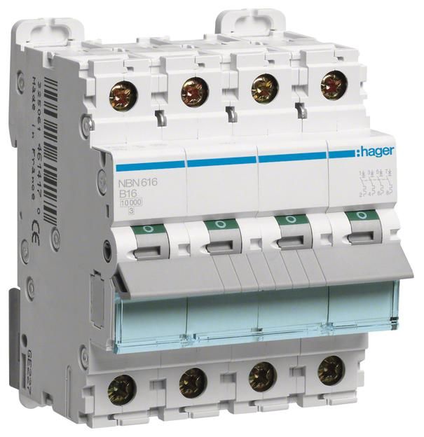 NBN616 Hager MCBs 3P + N 10kA B-16A, 4M