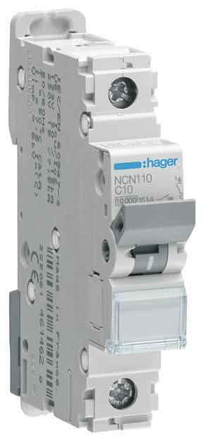 We offer you Hager NCN110 circuit breaker tripping characteristic C-10A 1P 10kA 1M always at the best possible price. We can give you a discount of 2% on Hager NCN110 circuit breaker tripping characteristic C-10A 1P 10kA 1M if you choose payment in advance on ordering.