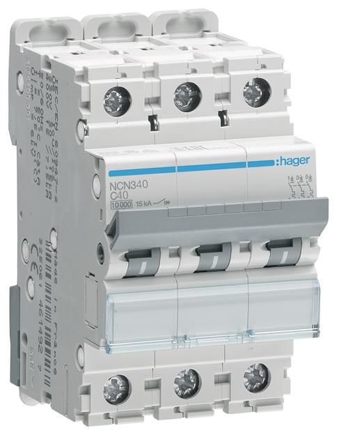 Hager NCN340 breakers 3-pole, C-40A, 10kA, 3M,