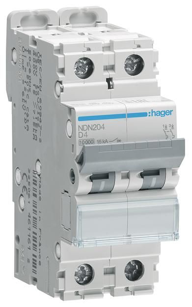 NDN204 Hager MCBs 2P 10kA D-4A, 2M