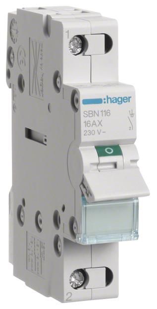 The article Hager SBN116 off switch 16A 1S 230V AC 1P is currently in stock