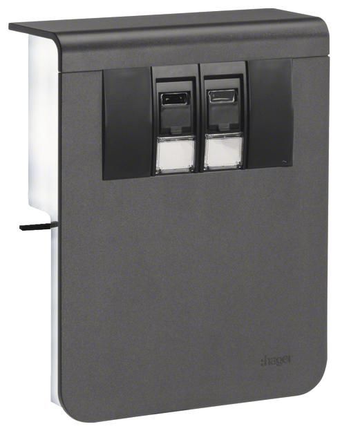 Hager SL201159079011 equipment rack, 2xCat.6 graphite black