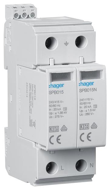 We offer you Hager SPB215 surge arrester T2 2P 40kA TT/TNS defect display + contact always at the best possible price. We can give you a discount of 2% on Hager SPB215 surge arrester T2 2P 40kA TT/TNS defect display + contact if you choose payment in advance on ordering.