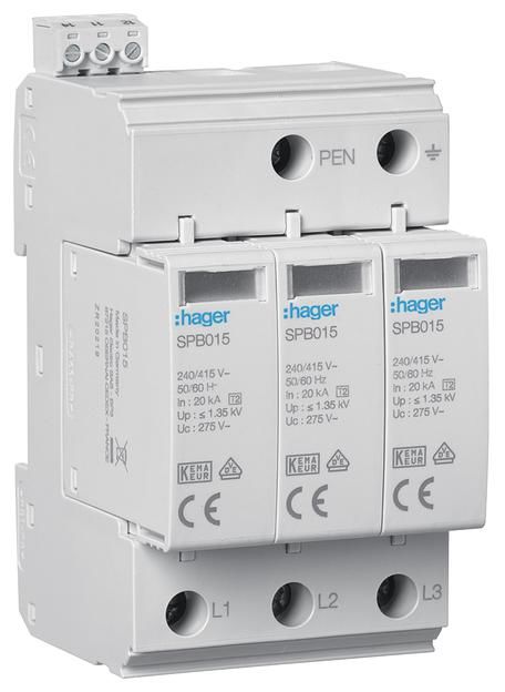 Hager SPB315 surge arrester T2 3P 40kA TNC defect display + contact