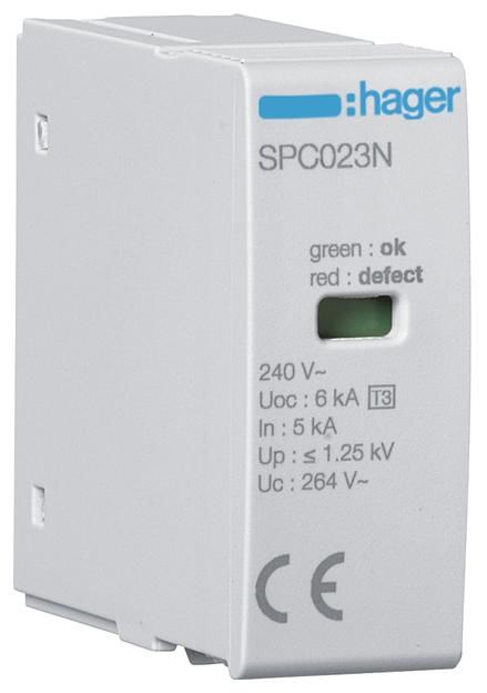 We offer you Hager SPC023N plug-in module T3 1P Uc 264V In 5kA Uoc 6kV Up 1.25kV always at the best possible price. We can give you a discount of 2% on Hager SPC023N plug-in module T3 1P Uc 264V In 5kA Uoc 6kV Up 1.25kV if you choose payment in advance on ordering.