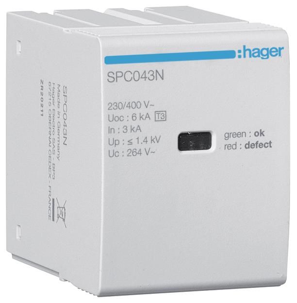 Hager SPC043N plug-in module T3 N-PE Uc 264V In 3kA Uoc 6kV Up 1.4kV