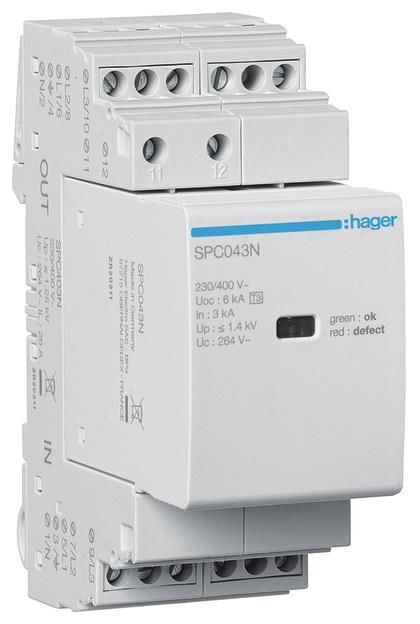 Hager SPC403N surge arrester 3P+N Uc 264V In 3kA Up 1.4kV contact