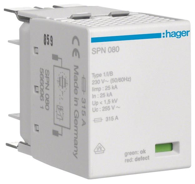 We offer you Hager SPN080 plug-in module 1P 25kA Type1 SPN8xxx P always at the best possible price. We can give you a discount of 2% on Hager SPN080 plug-in module 1P 25kA Type1 SPN8xxx P if you choose payment in advance on ordering.