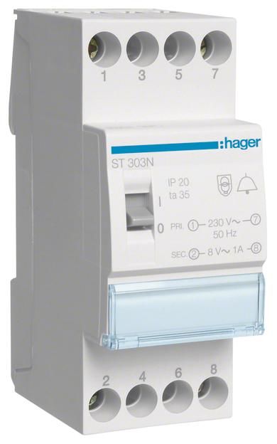 Hager ST303N 230V/8V 8VA bell transformer, with switch 2 PLE