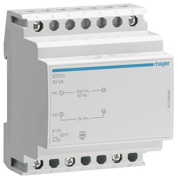 We offer you Hager ST310 safety transformer 230V/24V 20VA 4PLE always at the best possible price. We can give you a discount of 2% on Hager ST310 safety transformer 230V/24V 20VA 4PLE if you choose payment in advance on ordering.