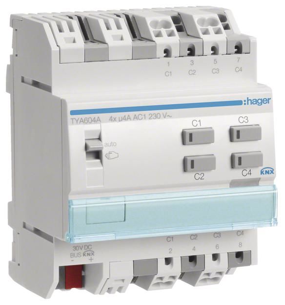 HAGER TYA604A switching / shutter output, KNX 4-fold, 4A