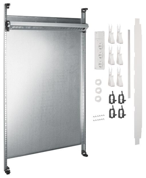 Note: Shielded data modules RJ45 Cat. 6 (500 MHz) are not included. A cable from the patch panel to the equipotential bonding rail (functional equipotential bonding in accordance with DIN EN 50310 - VDE 0800-2-310) must be connected (not included). Additional partitions from the multimedia field next to a side empty field or other installation kits must be installed according to application (not included).