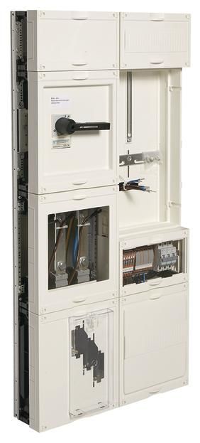 for installation in univers distribution cabinets 1100 mm high, at least 2 fields, at least 205 mm deep, including feed terminals up to max. 50 mm², supply line from below and discharge line upwards for direct connection,