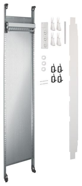 Note: Shielded data modules RJ45 Cat. 6 (500 MHz) are not included. A cable must be connected from the patch panel to the equipotential bonding rail (functional equipotential bonding in accordance with DIN EN 50310 - VDE 0800-2-310) (not included). Additional partitions from the multimedia field next to a side empty field or other installation kits must be installed depending on the application (not included).