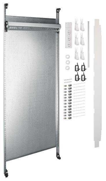 Note: A cable must be connected from the patch panel to the equipotential bonding rail (functional equipotential bonding according to DIN EN 50310 - VDE 0800-2-310) (not included). Partitions from the multimedia field next to other installation kits must be installed depending on the application (not included).