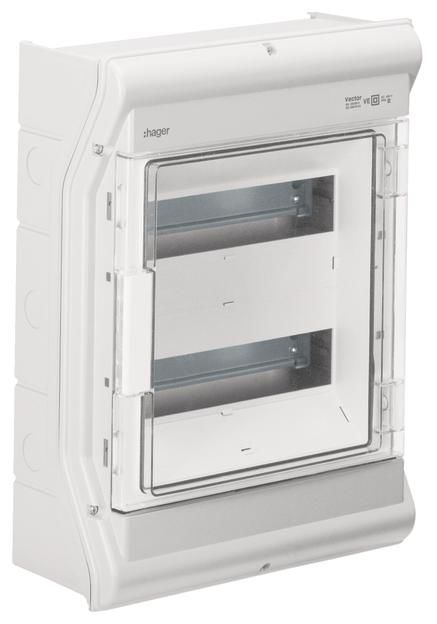 1x HAGER VE212SN distributor Vector IP65, 2x12PLE UV stable o.Leitungseinführung