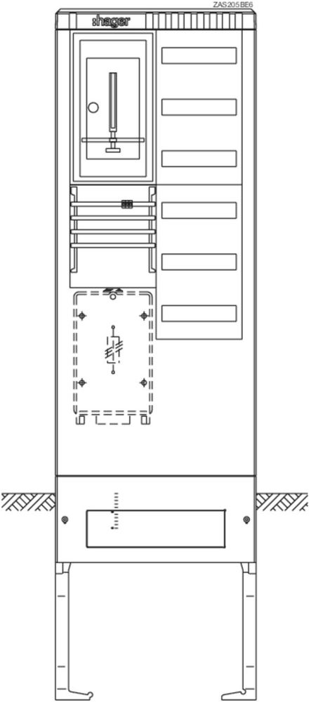 Hager ZAS205BE6 meter connection column 1ZP +1V6R 2-field