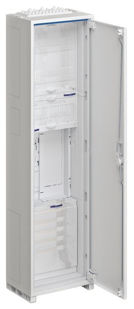 Complete cabinet, universal Z, 1 meter space, BKE-I, H = 1100 mm, 1 field.,. Meter cabinet solution cabinet housing according to DIN VDE 0603/1, dimension standard DIN 43 870 for surface-mounted, flush-mounted or partially recessed installation. Consists of a cabinet with door made of powder-coated, baked-in, stably profiled 1 mm thick sheet steel. Interior lining made entirely of plastic. Cable entries at the top and bottom through built-in plastic flange plates. Rear pre-punching in the plastic part. Busbar bushings as flanges on both sides that can be opened without tools in the lower area as a way of connecting busbars between different cabinets or in conjunction with a cable junction box and connection set. In addition to the bushing in the NAR, there are also openings in the area of the AAR (for heights 1100 and 1400 mm) and RfZ (for heights 1100 mm). Door flush with the front with internal, adjustable hinges, can be opened on the right or left with an opening angle of 110°. Door lock with cam lock. Door lock can be replaced with other locks. Cabinets can be flanged next to each other or one above the other. Cabinet size 1 to 5 fields with 72 to 540 space units (PLE). Note: The main line must be inserted into the lower connection compartment of the meter cabinet from below or from the side and connected there in accordance with VDE-AR-N 4100:2019-04. Height: __ mm (1100mm or 1400mm) Width: __ mm Depth: 205 / 160 mm, RAL color: 9010 Protection type 44, protection class II Nominal current of the busbar system 250 A Design in accordance with VDE-AR-N 4100:2019-04 Meter system for __ meter space(s). According to the technical connection conditions (TAB) of the VNB __ for: __ Electronic household meters (eHZ) or __ meters with 3-point fastening (3HZ). __ for supply systems with normal household consumption max. 63 A (10mm²) according to DIN 18015-1 (__ apartments, __ general, __ reserve, __ heat pump) __ for continuous current applications max. 32 A (10 mm²) according to VDE-AR-N 4100:2019-04 (e.g. PV up to 22 KW) __ for continuous current applications max. 44 A (16 mm²) according to VDE-AR-N 4100:2019-04 (e.g. PV up to 30 KW) __ for meter locations with more than 63 A in intermittent operation or 44 A in continuous operation (transformer measurement) Nominal current _ A, nominal power _ kW __ Tariff ripple control receiver as three-point version alternatively __ Tariff ripple control receiver as top-hat rail version __ Distribution panel (__ PLE), with/without busbars for feeding in __ Distribution panel (__ PLE) with APZ room according to VDE-AR-N 4100:2019-04, with/without busbars for feed-in __ Communication panel, 1- or 2-panel __ Communication panel with APZ room according to VDE-AR-N 4100:2019-04, with/without busbars for feed-in __ SLS switch Hager HTS3xxE in __ A.. Voltage tap for power supply additional devices according to VDE-AR-N 4100:2019-04: __ before the SLS with fuse box pluggable 25 kA __ before the SLS with LS switch 10 A / 25 kA __ behind the SLS with fuse box pluggable 25 kA. Surge protection with combination arrester type 1/2/3 for busbar mounting in the UAR.To comply with the requirements of DIN VDE 0100-443 and -534: ___for TNS/TT network, without external lightning protection, back-up fuse in the HAK - 160 A ___for TNC network, without external lightning protection, back-up fuse in the HAK - 160 A ___for TNS/TT network, with external lightning protection, back-up fuse in the HAK - 160 A ___for TNC network, with external lightning protection, back-up fuse in the HAK - 160 A ___for TNS/TT network, with external lightning protection, back-up fuse in the HAK - 315 A ___for TNC network, with external lightning protection, back-up fuse in the HAK - 315 A Fuse for cellar, washing machine, dryer (if TAB / DIN compliant) per WE (max. 6 PLE) __ pieces of FI/LS switch 10 kA, 16 A, 30 mA (ADA516D). General distribution panel equipped with: __ pcs. LS switch 6 kA, 16 A (MBS116) __ pcs. FI/LS switch 6 kA, 16 A, 30 mA (ADS916D) __ pcs. RCD type 40 A 4-pole, 30 mA (CDS440D). Consisting of: __ pcs. ZB__S, meter cabinet __ pcs. ZK__ Complete panel for __ meters __ selected make/type: HAGER/univers Z or equivalent, supply, install and connect ready for operation.