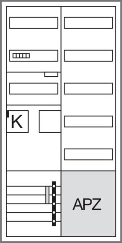Complete cabinet, universZ, 1ZP, BKE-I, OKK, APZ, VT5, H=1100mm, 2-field, HLAK-5p., ESA. Meter cabinet solution cabinet housing according to DIN VDE 0603/1, dimensional standard DIN 43 870 for surface-mounted, flush-mounted or partially recessed installation. Consists of a cabinet with door made of powder-coated, baked-in, stably profiled 1 mm thick sheet steel. Interior lining made entirely of plastic. Cable entries at the top and bottom through built-in plastic flange plates. Pre-punched part on the back of the plastic part. Busbar bushings as flanges on both sides that can be opened without tools in the lower area as a way of connecting busbars between different cabinets or in conjunction with a cable junction box and connection set. In addition to the bushing in the NAR, there are also openings in the area of the AAR (for heights of 1100 and 1400 mm) and RfZ (for heights of 1100 mm). Door flush with the front with internal, adjustable hinges, can be opened on the right or left with an opening angle of 110°. Door lock with cam lock. Door lock can be replaced with other locks. Cabinets can be flanged next to each other or one above the other. Cabinet size 1 to 5 fields with 72 to 540 space units (PLE). Note: The main line must be inserted into the lower connection compartment of the meter cabinet from below or from the side and connected there in accordance with VDE-AR-N 4100:2019-04. Height: __ mm (1100mm or 1400mm) Width: __ mm Depth: 205 / 160 mm, RAL color: 9010 Protection type 44, protection class II Nominal current of the busbar system 250 A Design in accordance with VDE-AR-N 4100:2019-04 Meter system for __ meter space(s). According to the technical connection conditions (TAB) of the VNB __ for: __ Electronic household meters (eHZ) or __ meters with 3-point fastening (3HZ). __ for supply systems with normal household consumption max. 63 A (10mm²) according to DIN 18015-1 (__ apartments, __ general, __ reserve, __ heat pump) __ for continuous current applications max. 32 A (10 mm²) according to VDE-AR-N 4100:2019-04 (e.g. PV up to 22 KW) __ for continuous current applications max. 44 A (16 mm²) according to VDE-AR-N 4100:2019-04 (e.g. PV up to 30 KW) __ for meter locations with more than 63 A in intermittent operation or 44 A in continuous operation (transformer measurement) Nominal current _ A, nominal power _ kW __ Tariff ripple control receiver as three-point version alternatively __ Tariff ripple control receiver as top-hat rail version __ Distribution panel (__ PLE), with/without busbars for feeding in __ Distribution panel (__ PLE) with APZ room according to VDE-AR-N 4100:2019-04, with/without busbars for feed-in __ Communication panel, 1- or 2-panel __ Communication panel with APZ room according to VDE-AR-N 4100:2019-04, with/without busbars for feed-in __ SLS switch Hager HTS3xxE in __ A.. Voltage tap for power supply additional devices according to VDE-AR-N 4100:2019-04: __ before the SLS with fuse box pluggable 25 kA __ before the SLS with LS switch 10 A / 25 kA __ behind the SLS with fuse box pluggable 25 kA. Surge protection with combination arrester type 1/2/3 for busbar mounting in the UAR.To comply with the requirements of DIN VDE 0100-443 and -534: ___for TNS/TT network, without external lightning protection, back-up fuse in the HAK - 160 A ___for TNC network, without external lightning protection, back-up fuse in the HAK - 160 A ___for TNS/TT network, with external lightning protection, back-up fuse in the HAK - 160 A ___for TNC network, with external lightning protection, back-up fuse in the HAK - 160 A ___for TNS/TT network, with external lightning protection, back-up fuse in the HAK - 315 A ___for TNC network, with external lightning protection, back-up fuse in the HAK - 315 A Fuse for cellar, washing machine, dryer (if TAB / DIN compliant) per WE (max. 6 PLE) __ pieces of FI/LS switch 10 kA, 16 A, 30 mA (ADA516D). General distribution panel equipped with: __ pcs. LS switch 6 kA, 16 A (MBS116) __ pcs. FI/LS switch 6 kA, 16 A, 30 mA (ADS916D) __ pcs. RCD type 40 A 4-pole, 30 mA (CDS440D). Consisting of: __ pcs. ZB__S, meter cabinet __ pcs. ZK__ Complete panel for __ meters __ selected make/type: HAGER/univers Z or equivalent, supply, install and ready for operation a