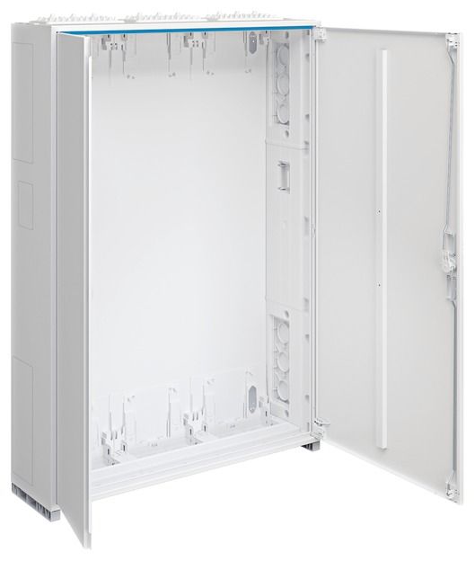 Door flush with the front with internal, adjustable hinges, can be opened either on the right or left with an opening angle of 110°. Door lock with sash, from a width of 800 mm and for all cabinets from a height of 1250 mm with a rod lock with three-point locking. Door lock can be replaced with other locks. Cabinets can be flanged next to each other and on top of each other. Cabinet size 1 to 5 fields with 72 to 540 space units (PLE).