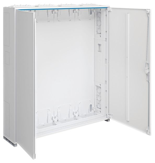Door flush with the front with internal, adjustable hinges, can be opened either on the right or left with an opening angle of 110°. Door lock with sash, from a width of 800 mm and for all cabinets from a height of 1250 mm with a rod lock with three-point locking. Door lock can be replaced with other locks. Cabinets can be flanged next to each other and on top of each other. Cabinet size 1 to 5 fields with 72 to 540 space units (PLE).